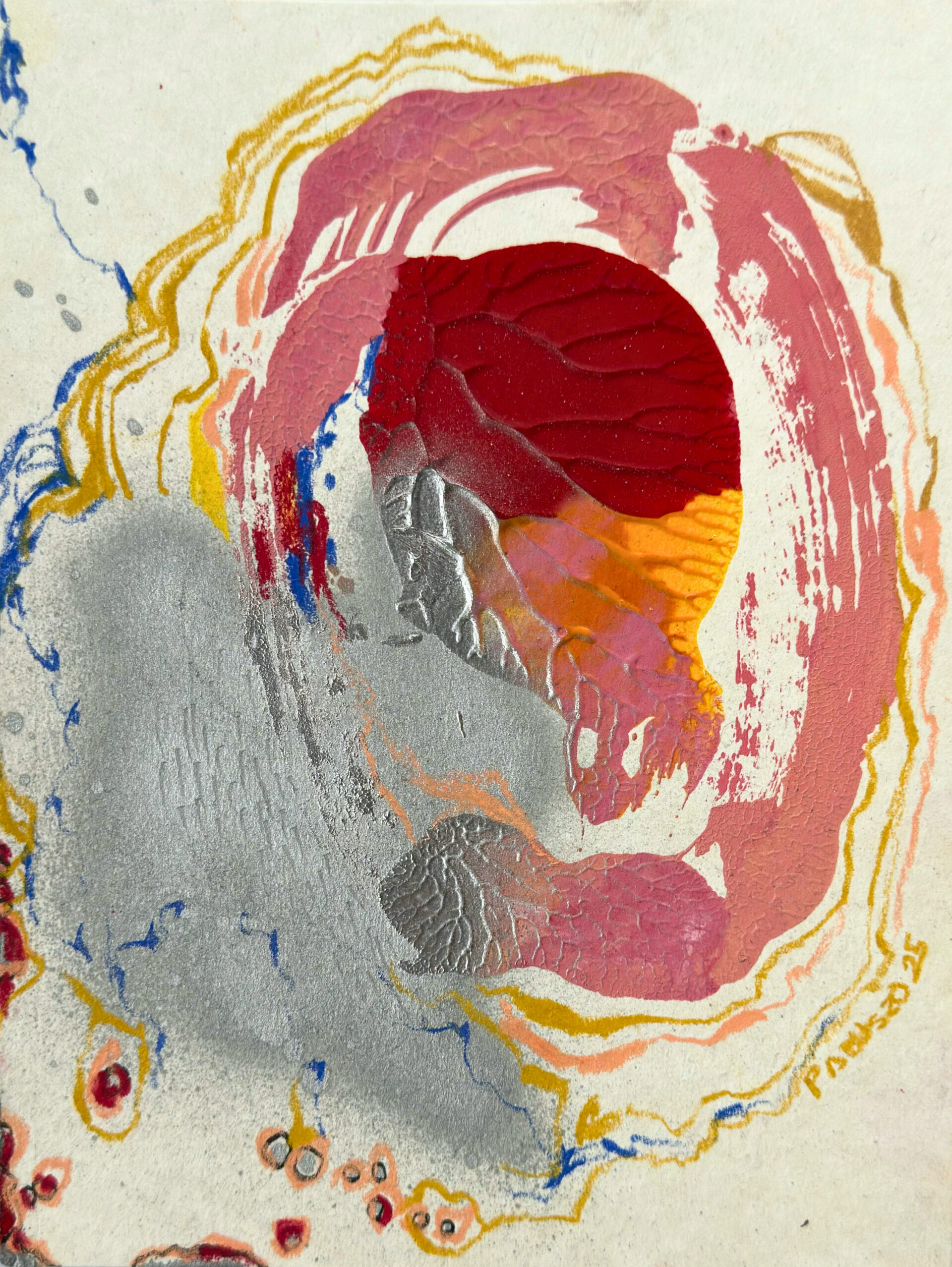 Jádro (15×20 ) Kombinovaná technika na lepence, 2025